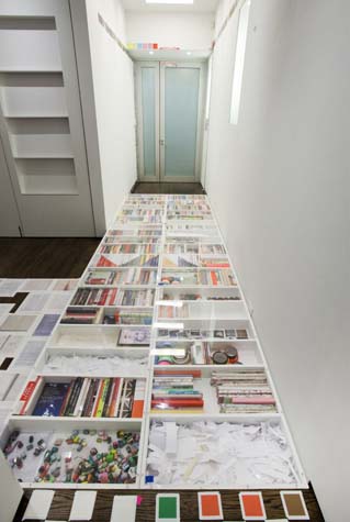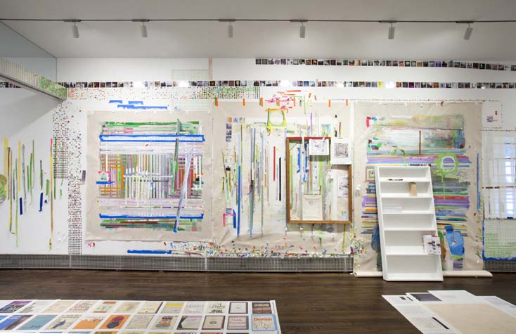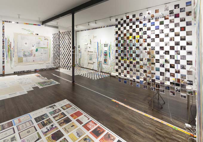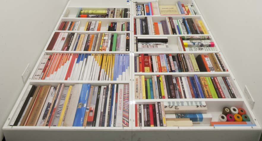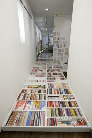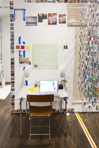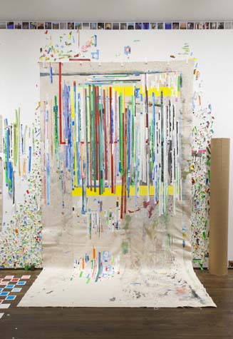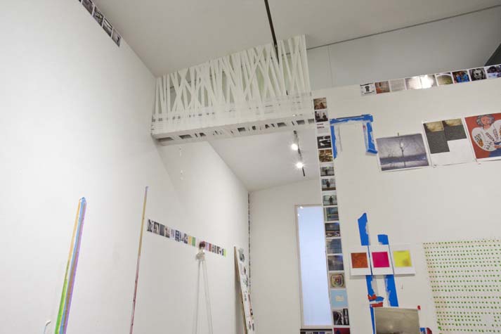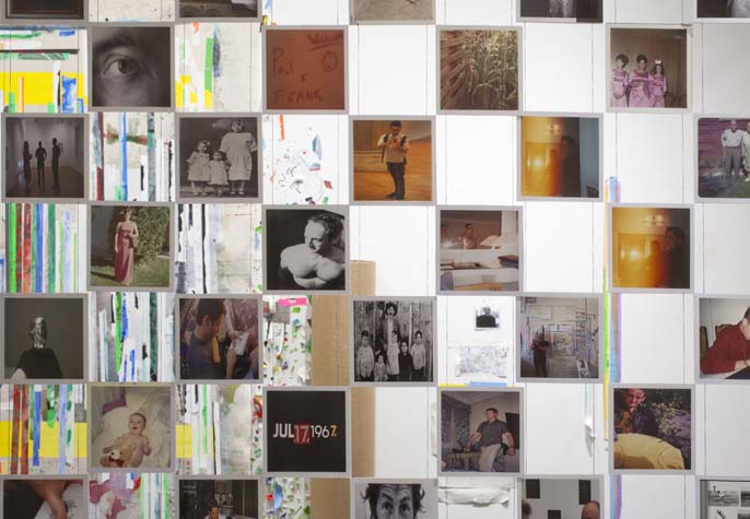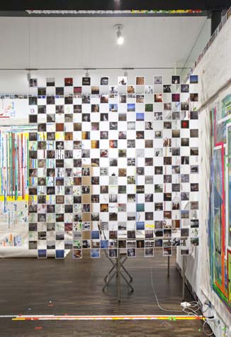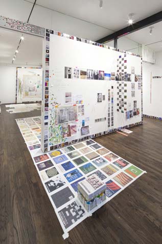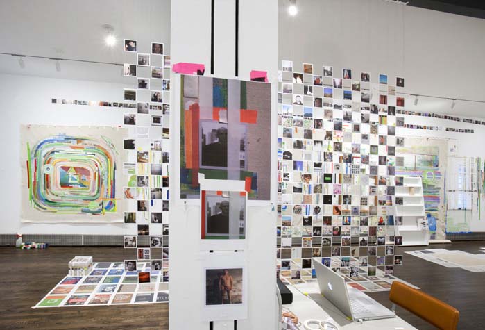 | eyesontheedge - 1,000 sq ft, mixed media installation (solo exhibition), at Sue Scott Gallery(New York, 2012) A mixed media installation with paintings, sculptures, photographs, and a sound piece in an all-encompassing environment. The artworks were contextualized through the presentation of the more peripheral information that surrounds an artist (thoughts, sounds, books, images and memory). The 2,400 photographic images in the exhibition were categorized as: 1. process, 2. past art, 3. current art season, 4. art / identity politics, 5. institutional critique, 6. biography pre-NYC, 7. biography NYC, 8. Nevada landscape, 9. found landscape, 10. Richter/Warburg Atlas. The photographs were standardized to a 3.5 inch square format polaroid print (the format at my birth year 1967). The performative/text sound piece 1967 consisted of 350 thoughts from my readings during the year prior to the 2012 exhibition. The books ranged from Justin Spring’s biography of Samuel Steward, “Secret Historian,” and Gertrude Stein’s “Autobiography of Alice B. Toklas” to Jack Flam’s “Matisse on Art” and October Files’ “Robert Rauschenberg.” The text extractions were performed by five voices on a random shuffle, and 1967, operating in the slippery non-linearity of memory, like the format of the polaroid, transported the viewer to my birth year. Link to 1967 (4 minute extract from 4 hour sound piece), from eyesontheedge, Franklin Evans, 2012 Link to Jerry Saltz Critics Pick, New York Magazine, April 2012. Link to Howard Hurst Review, Hyperallergic, March 2012. Link to Matthew Farina Review, SVA Art Criticism and Writing, April 2012. Link to Daniel Kunitz Critics Pick Review, Modern Painters, June 2012. Link to Andrea Scott Goings On About Town, The New Yorker, April 2012. Link to Leigh Anne Miller, Weekly Lookout, Art in America, March 2012. Link to Kara Rooney, A Studio Visit With Franklin Evans, The Brooklyn Rail, March 2012. |