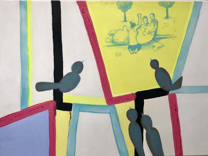 Curated by Franklin Evans, perspex:american shift presents 12 American artists: Amanda Church, Anthony Iacono, Brian Alfred, David Humphrey, Elliott Green, Eric Wolf, Ezra Johnson, Jackie Gendel, John Dilg, Kate Gilmore, Matthew F Fisher, and Pedro Barbeito. Perspex: american shift presents work that to varying degrees reflects a repositioning related to the major cultural and global socio-political shifts that we have experienced over the past twenty years, including the most recent repositioned America of amplified cultural polarities. The art world and artists are not immune to this change.. During the past twenty years, I have discovered and/or explored the work of these artists. They all work in the United States, crossing the country from New York to Iowa to Los Angeles, so perhaps producing from a vantage point of geographic specificity. Some work seems to consciously slow our experience, allowing us to see more, slowly, and in full absorption. Some work embeds windows into windows, pictures into pictures, clean yet complex spaces of ambiguity. Who watches? How? And what? Other work uses contemporary distance filters, the cleaned-up pixels of the image read through screens, social media, and a sense of digital global proximity performed in the ubiquitous social media image feeds. All of the work is painting (or arguably so), which seems strange in our digital age and half a century beyond painting’s proscriptive death. These artists make their work, aware of art’s history and the cultural present, but are also acutely involved in their specific and powerful ownership of their individual artistic practices. Even when art absorbs the world around itself, it is powerfully personal and experimental, a creative laboratory that shifts within its own space surrounded by or surrounding the world beyond. - Franklin Evans March 2019