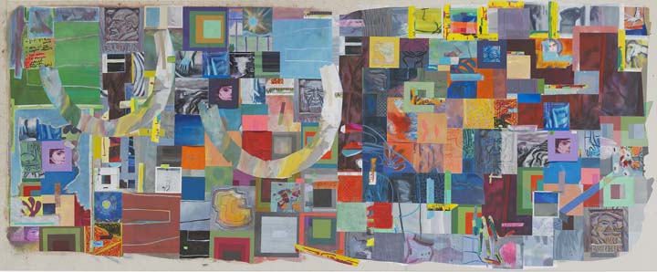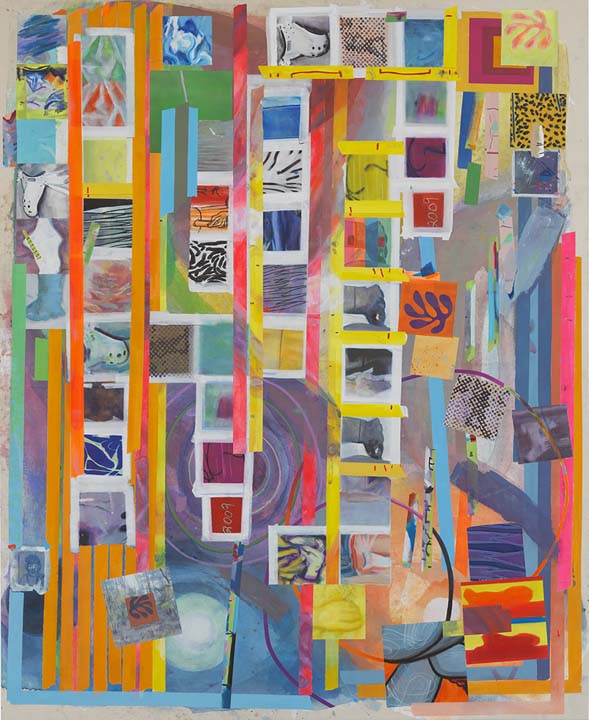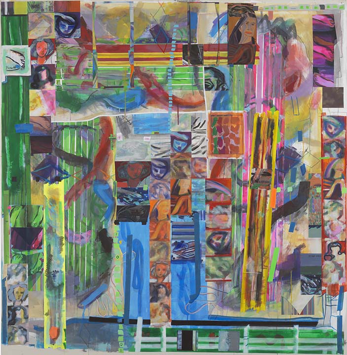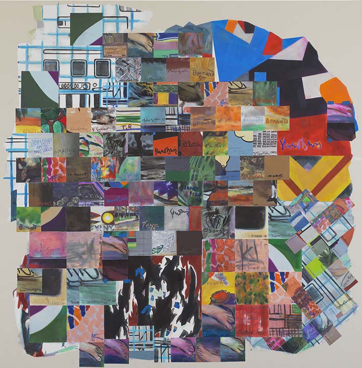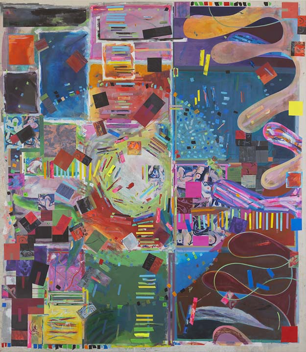 | paintingpainting - solo exhibition, at Ameringer McEnery Yohe (New York, NY, 2017) "For the past ten years I have engaged with many elements of the artist's studio - painting, drawing, materials, color systems, process trials, process notes, logistics, accounting, order, chaos, books, and art history's visual records - and have made the studio in the round the subject of my paintings. I have typically presented the paintings in the context of installations of the exposed studio, nakedly incorporating various provisional studio processes and presenting a self-reflexive position that merges life and studio life. With paintingpainting, my second solo exhibition at Ameringer | McEnery | Yohe, in order to see my paintings qua paintings, I have extracted the work from the contextual world of the studio in which it was made, upending the form in which I have presented past paintings. Like my installations, these paintings are full of an overwhelming mass of visual information, swallowed from my studio. The tightly packed compositions simultaneously employ linear, grid, and concentric structures to amplify the complexity and to oscillate and destabilize the viewing position. The paintings frequently employ painted details of other paintings, from the modernist canon (Matisse, Cezanne, Picabia, Picasso, and Braque, among others) to less canonical and contemporary figures (including Alma Thomas, Dana Schutz, Alex Katz, Jane Freilicher, Mimi Gross, and my own past paintings). The compression of painting's history within each work and my use of non-stable compositional structures mirror my own firmly unstable position. I paint with an irrational and constantly expanding love of painting while simultaneously accepting the impossibility of resolutely holding a position unchanged. - Franklin Evans He is a current recipient of the 2017-18 Pollock-Krasner Foundation Grant. Link to Ameringer McEnery Yohe paintingpainting, 2017 PRESS RELEASE